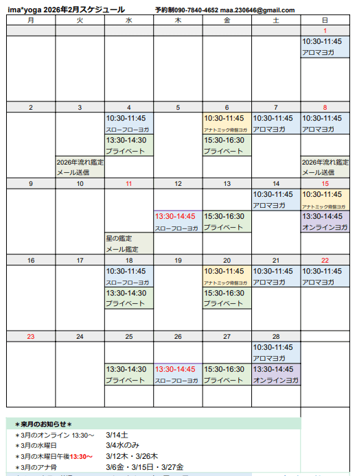【2026年2月スケジュール】