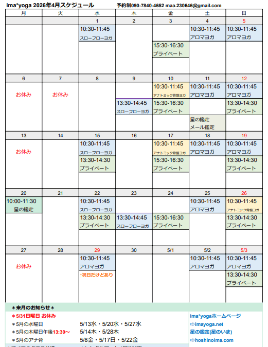 ※4月の予定は後日アップします。