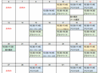 月1回ほどで月曜昼のアロマヨガを復活させました。